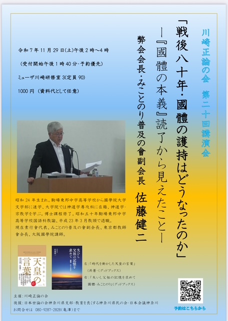 第20回講演会 「戦後八十年・國體の護持はどうなったのか」ー『國體の本義』読了から見えたことー |